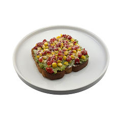 Smashed avocado, corn, roasted red peppers, parmesan cheese on toasted honey wheat