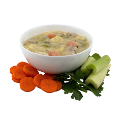 Chicken, sautéed onions, celery, carrots, dumplings, chicken stock, parsley