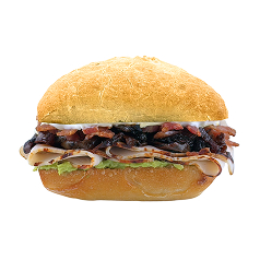Roasted turkey, bacon, balsamic onion relish, smashed avocado, caramelized onion aioli on toasted ciabatta