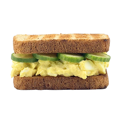 Hard-boiled egg, mayonnaise, cucumbers on toasted honey wheat