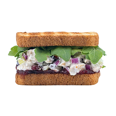 Chicken, cranberries, celery, red onion, mayonnaise, whole cranberry sauce, arugula on toasted honey wheat