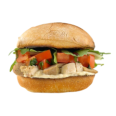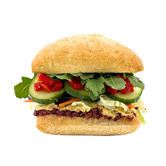 Hummus, shredded slaw, kalamata olives, roasted red peppers, cucumbers, arugula, lemon vinaigrette, on toasted ciabatta