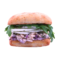 Marinated tuna, fennel, kalamata olives, mayonnaise, arugula, lemon vinaigrette on toasted ciabatta
