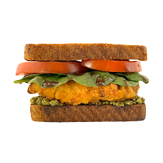 Breaded chicken cutlet, basil pesto, tomatoes, spinach, balsamic vinaigrette on toasted honey wheat
