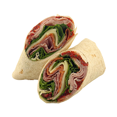 Genoa salami, ham, pepperoni, herb tomato spread, mozzarella cheese, spinach in a flour tortilla