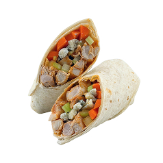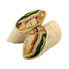 Breaded chicken cutlet, ham, Swiss cheese, honey mustard, spinach in a flour tortilla