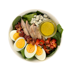 Chicken, house made bruschetta, hard-boiled egg, bacon, blue cheese crumbles, mixed greens, lemon vinaigrette