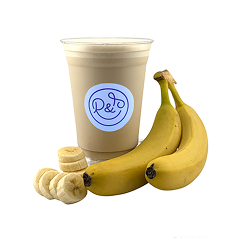 Acai, almond milk, banana, peanut butter, chocolate syrup, topped with granola, strawberry slices, banana slices, cacao nibs