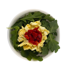 Cage-free egg over easy, roasted red peppers, Cabot white cheddar cheese, arugula, sriracha, pesto aioli, lemon vinaigrette on toasted English muffin
